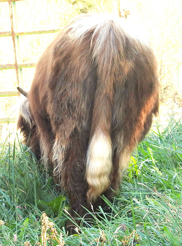 This beautiful little bull, sired by WKA Braxton, was born on 12/14/23. As a baby, Mackay looked to be a sturdy little red bull, but as all who are familiar with the Highland breed know, those calves can fool you with their color changes. He is now obviously brindle and has a generous amount of blond frosting in his dossan, down his flat top line and on the tip of his tail. Mackay loves to be groomed and will make a great young herd sire.