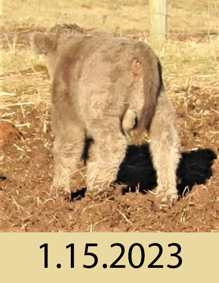 I have loved this bull since the day he was born. He has grown up to be very much like his sire, Big Ridge Fergus. Magician is shorter, only 41” at the hip at age 2, but he will continue to grow until maturity at about 4 years. He is thick and strong just like his sire who is very gentle and well behaved to this day. Here is a little photo history. Dates or age is with each photo.